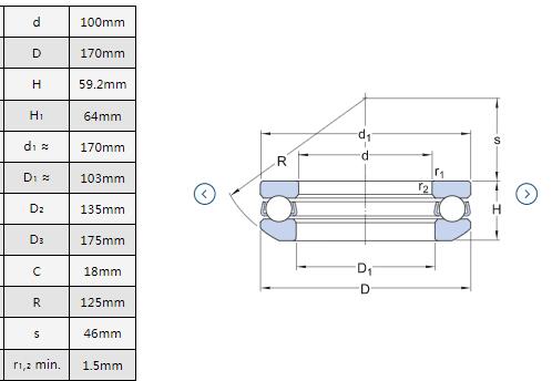 SKF 53320 Self-Aligning Thrust Bearing, 3 Piece, ABEC 1 Precision, 90° Contact Angle, Open, Steel Cage, Normal Clearance, 100mm Bore, 170mm OD, 59.2mm Width